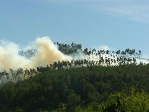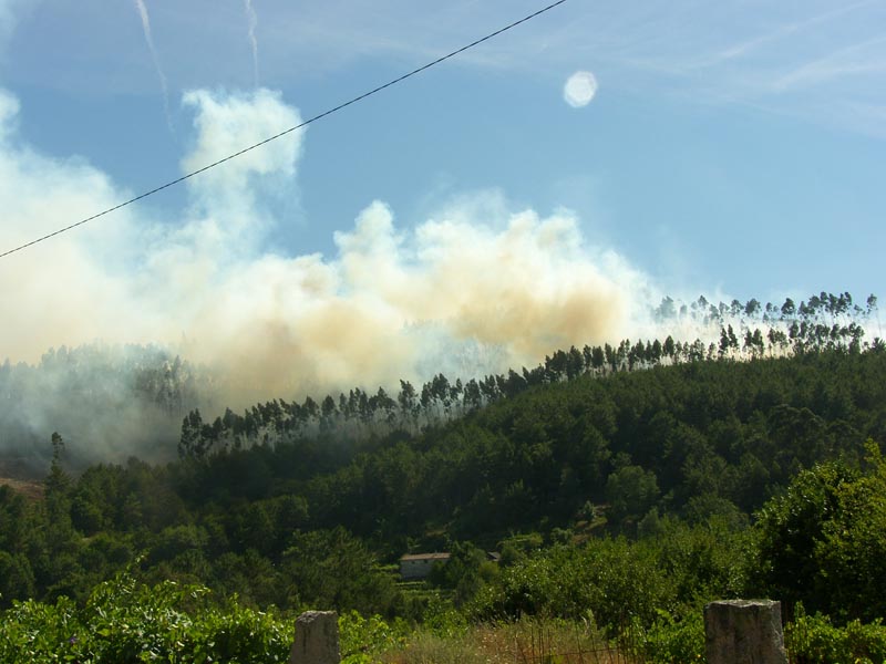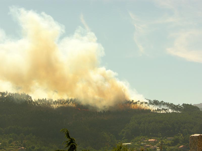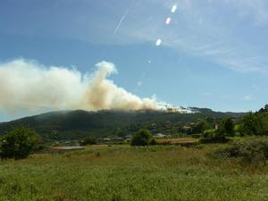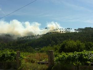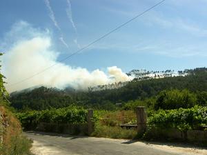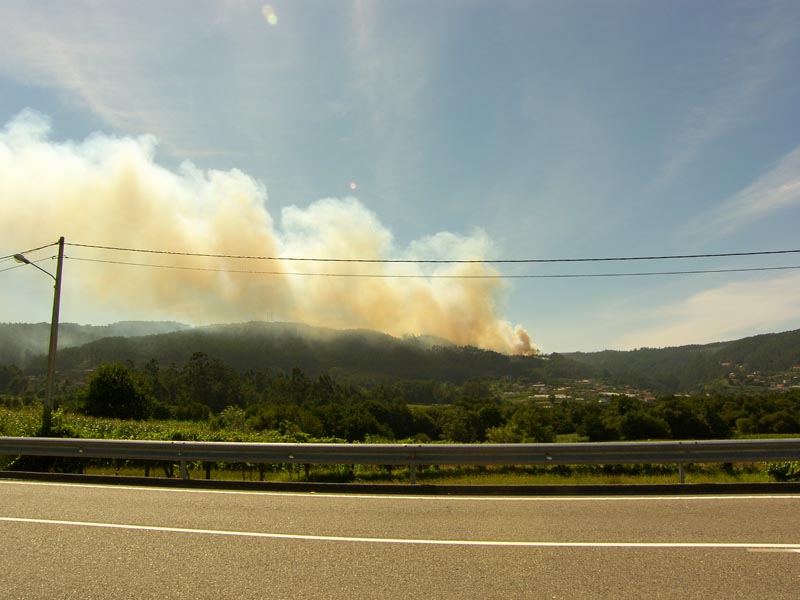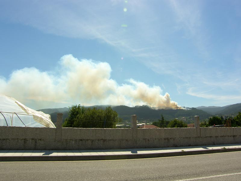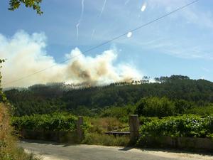 Sobre las 7 de la tarde se daba por extinguido el incendio que calcinó unas 3 hectáreas de monte y que, debido al viento norte, produjo una intensa columna de humo que se podía divisar desde el resto de Concellos del Baixo Miño.