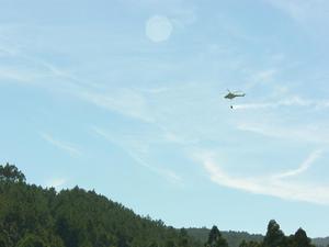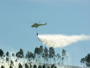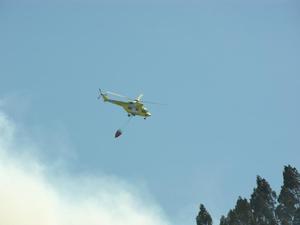 Varios efectivos del servicio de extinción de incendios se desplazaron al lugar de los hechos, contando con la colaboración aérea de un helicoptero de la Xunta de Galicia.