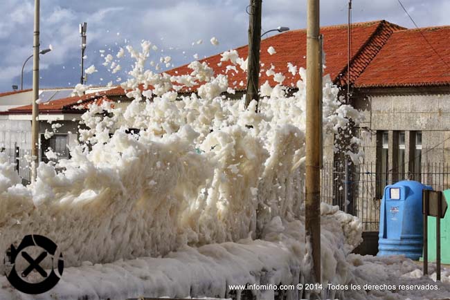 A escuma mariña volveu a invadir a estrada no Porto de A Guarda