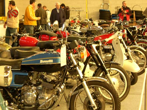 Centos de visitantes pasaron polo Pebellón de Goián para ver as numerosas motos antigas que alí estaban expostas e tamén para mercar pezas ou recambios de motos.