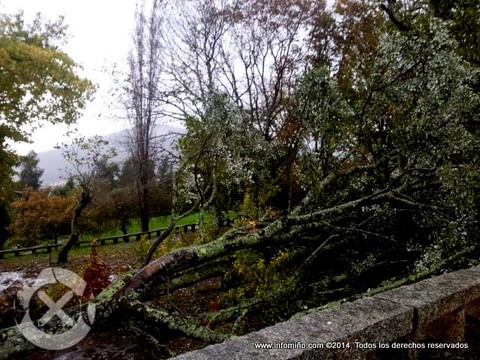 Na Guarda foron numerosas as incidencias ocasionadas por esta borrasca, no Parque do Cancelón(Montiño) unha árbore de grandes dimensións caíu durante a pasada madrugada, afectando tamén a outras que terán que ser retiradas segundo nos confirmaron dende a Comunidade de Montes de A Guarda en colaboración co Concello. Neste punto acudíu o GES a primeiras horas desta xornada para retirar algunhas polas que afectaban á circulación viaria na estrada de subida ó Monte Sta. Trega.