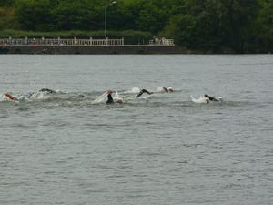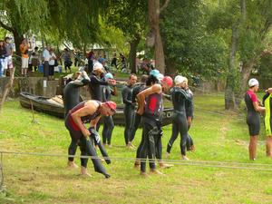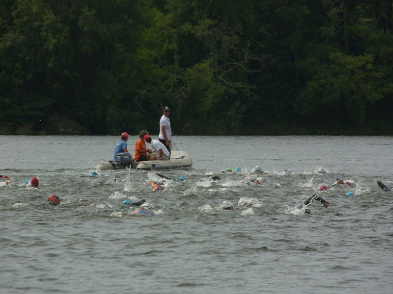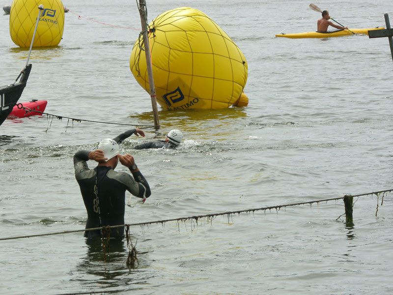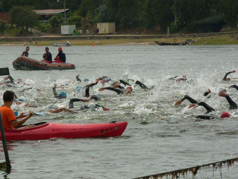 El comienzo de la prueba, 750 metros a nado desde Vilanova de Cerveira hasta el Embarcadero de Goian-Tomiño, tuvo una especial importancia debido a la gran corriente que había en el río Miño, lo que provocó que los que no supieron aprovecharla perdieran muchos minutos nadando a contra-corriente.