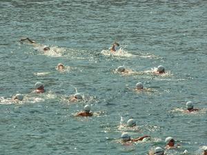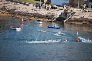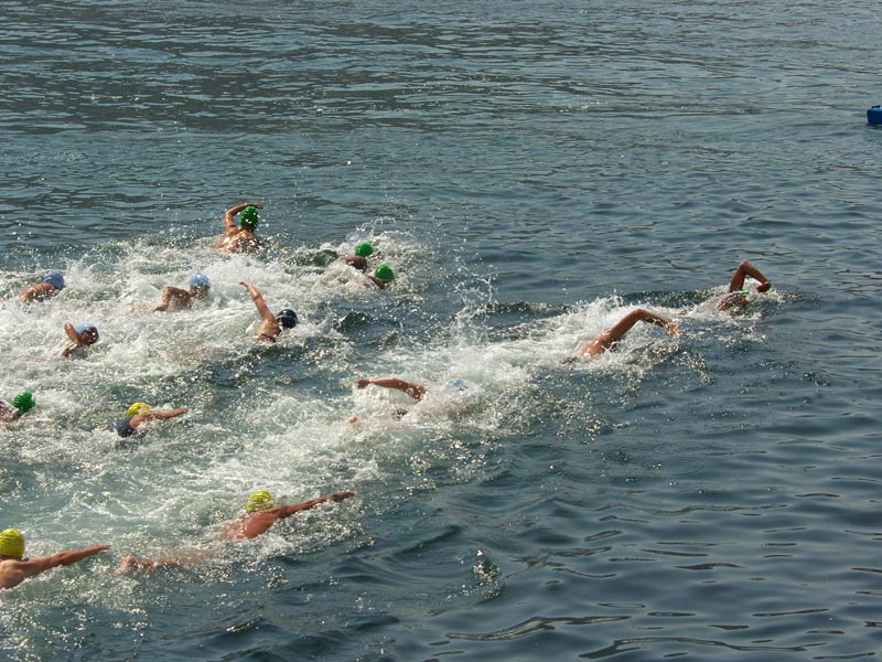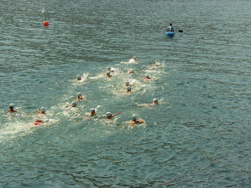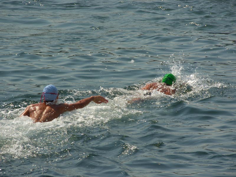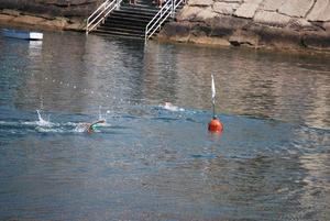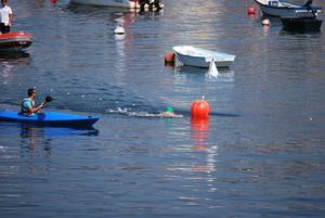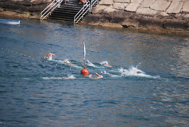 Asistimos á XIV Travesía do Porto de A Guarda onde case un centenar de nadadores e nadadoras fixeron o percorrido marcado pola organización dentro das augas do Porto de A guarda.