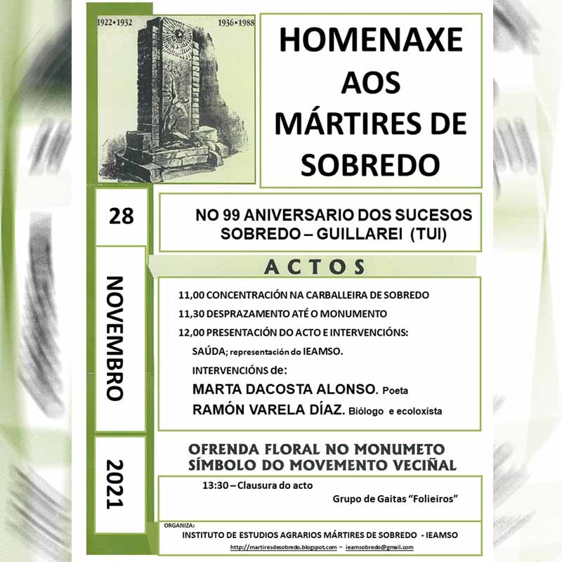 Hai 99 anos, no 28 de novembro do ano 1922, no lugar de Sobredo (Guillarei - Tui) cando a Garda Civil disolveu a tiros unha concentración de labregas e labregos, tres persoas: CÁNDIDA RODRÍGUEZ GONZÁLEZ, de Pazos de Reis (Tui); VENANCIO GONZÁLEZ ROMERO, de Budiño (Salceda); e, JOAQUÍN ESTÉVEZ BESADA, de Soutelo (Salceda); quedaron mortas e varias resultaron feridas;  participaban nun acto solidario de apoio a un veciño de Sobredo que ia ser embargado por non pagar rendas de Foros.