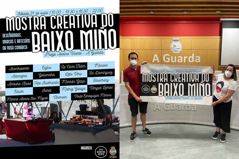 A I Mostra Creativa do Baixo Miño, celebrarase este sábado, 31 de Xullo, dende ás 10.00h ata ás 21.30h, na Praza de Avelino Vicente (As de Copas). No evento, organizado por Acontravento e o Concello a Guarda, participarán preto dunha vintena de proxectos creativos da nosa comarca.