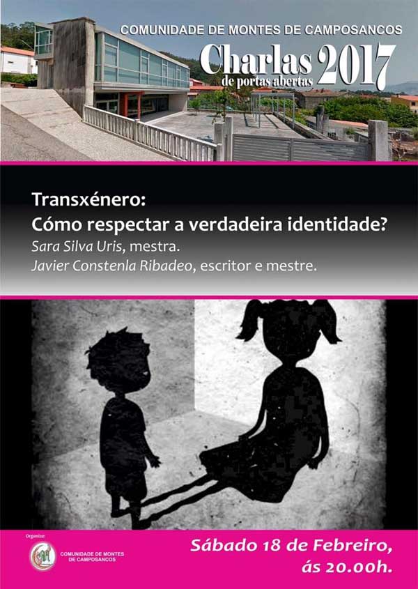 El próximo sábado día 18 de febrero a las 20.00h, en la Casa de la Comunidad de Montes de Camposancos, tendrá lugar una charla informativa donde se abordará el tema del transgénero infantil y adolescente.