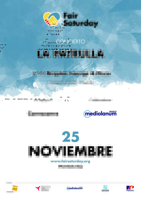 Banco Mediolanum, entidad española especializada en el asesoramiento financiero a sus clientes a lo largo de todas las etapas de su vida, apoyará a la ONG gallega Conrazones a través de un concierto solidario del grupo de pop/rock La Patrulla, organizado por Fair Saturday 2017.