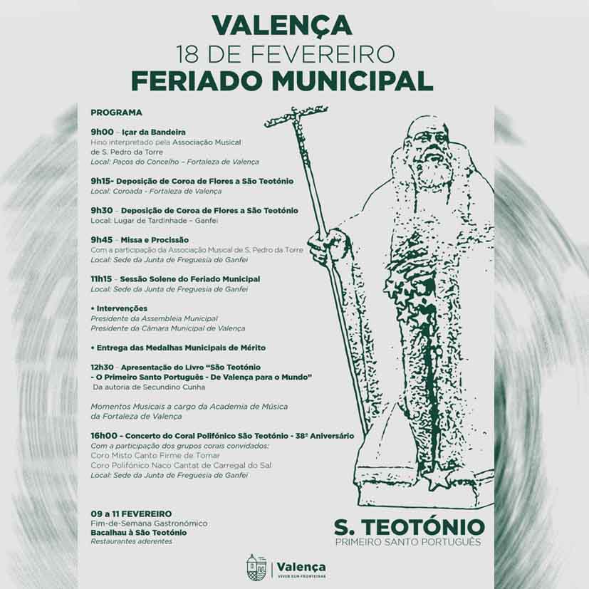 El Feriado Municipal de Valença en honor a São Teotónio, el Primer Santo Portugués, se celebrará el 18 de febrero con una serie de actos que reconocen el legado y la importancia de esta figura histórica para la identidad valenciana.