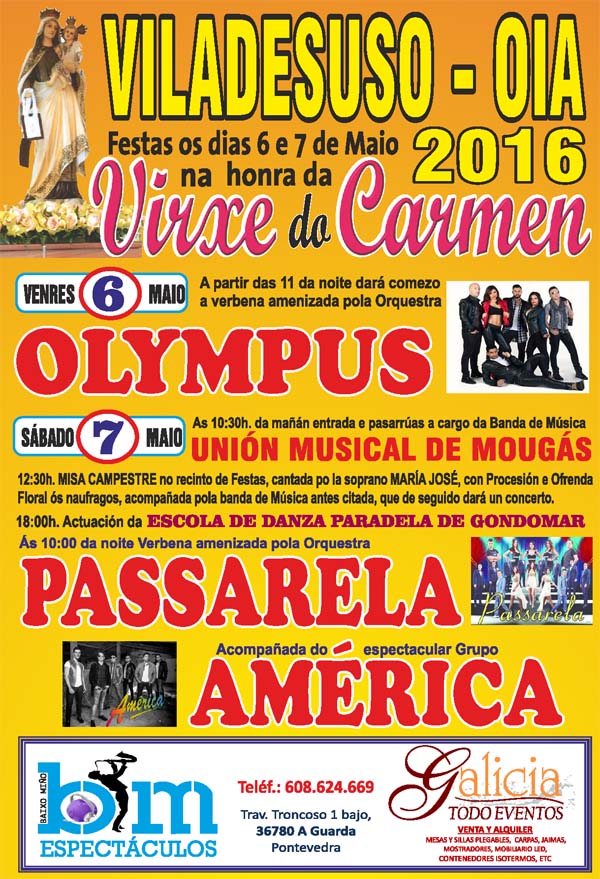 FESTAS DA VIRXE DO CARMEN 2016 O 6 E 7 DE MAIO EN VILADESUSO