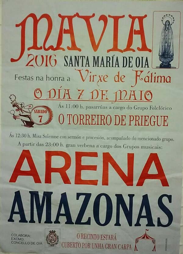 FESTAS NA HONRA DA VIRXE DE FÁTIMA HOXE SÁBADO EN MAVIA-OIA