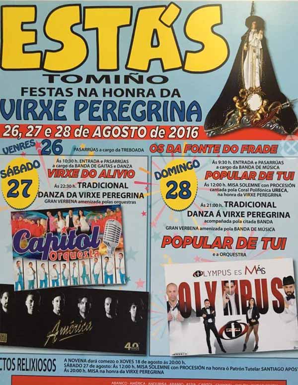 As verbenas estarán amenizadas polas orquestras Capitol, grupo América, Olympus y Banda de Música Popular de Tui