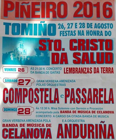 Los días 26, 27 y 28 de agosto de 2016 tendrán lugar las fiestas en honor al Santísimo Cristo de la salud en Piñeiro (Tomiño).