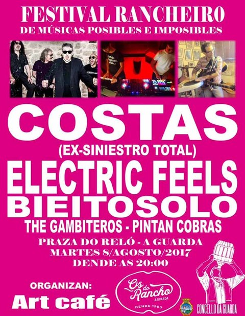 A Banda Mariñeira "Os do Rancho" organiza o vindeiro martes día 8 de agosto o Festival Rancheiro de Músicas Posibles e Imposibles que contará coas actuacións de Costas(Ex-Siniestro Total), Electric Feels, Bieitosolo, The Gambiteros e Pintán Cobras.