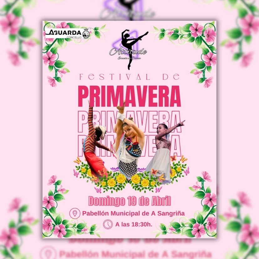 La escuela de danza Attitude celebrará este próximo domingo 19 de abril su esperado festival de primavera en el pabellón de A Sangriña, en el concello de A Guarda. La cita, que comenzará a las 18:30 horas, reunirá sobre el escenario a alumnos y alumnas de todas las edades, desde los 3 hasta los 20 años, mostrando el trabajo realizado durante el curso.
