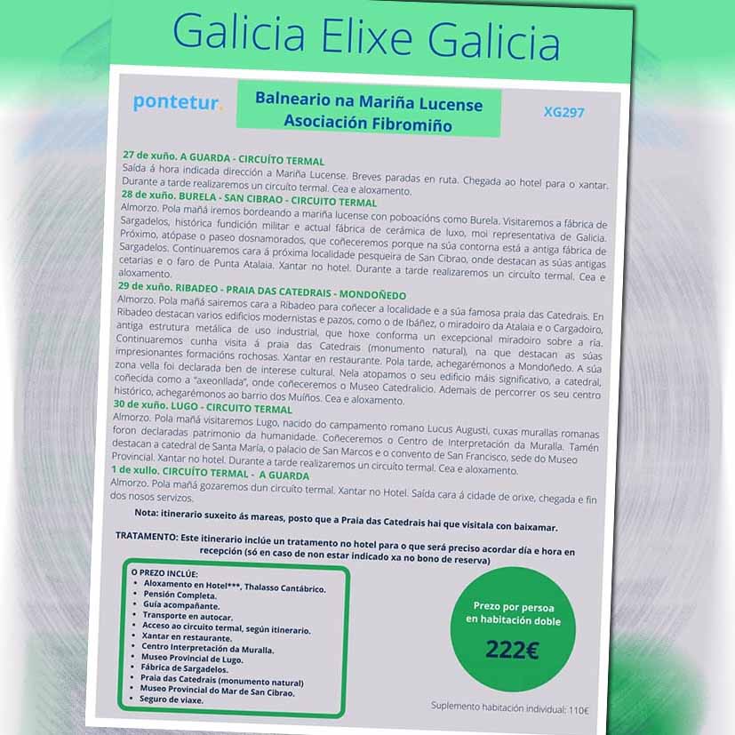 La Asociación Fibromiño organiza, dentro del programa "Galicia elixe Galicia" de la Xunta de Galicia un viaje a un Balneario en la zona de la Mariña Lucense.