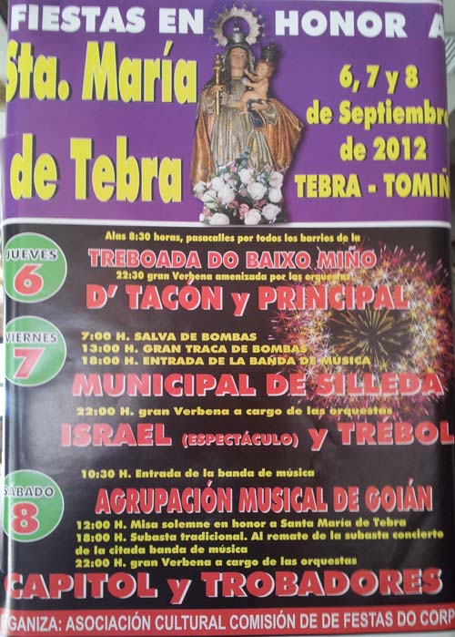 FIESTAS EN HONOR A STA. MARÍA DE TEBRA DO 6 Ó 8 DE SETEMBRO EN TOMIÑO