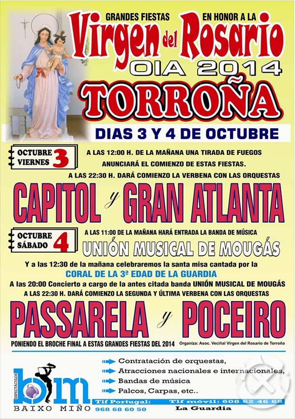 FIESTAS VIRGEN DEL ROSARIO EL 3 Y 4 DE OCTUBRE EN TORROÑA-OIA