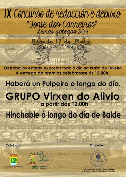 IX Concurso de Debuxo e Redacción "Fonte dos CArreiros" da Asociacion de Veciños "Fonte dos Carreiros" no que participan a aula de educacion infantil de Figueiró e Goian e o colexio de primaria Pintor Antonio FErnandez de Goian.