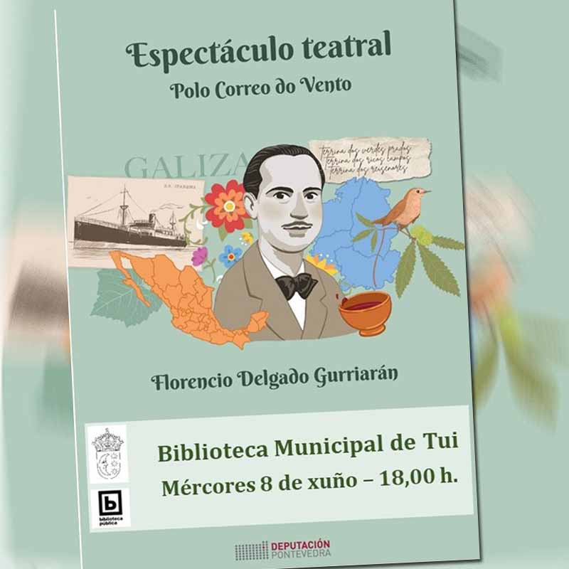 A Florencio Delgado Gurriarán U1903-1987) está dedicado este ano o Día das Letras Galegas que recoñece ao poeta valdeorrés como unha das voces mais senlleiras da literatura galega contemporánea, especialmente dende o seu exilio en América. A través desta actividade denominada “De Valdeorras a México. Terra A Nosa” a compañía de contacontos “Polo correo do vento” realiza unha actividade na que se alterna a narración da biografía do homenaxeado coa creación dunha ilustración e a interpretación de diversas pezas musicais. Contarase ademais con tradución en lingua signos para que a actividade sexa accesible a todas as crianzas,  e rematará cun coloquio e obradoiro onde cada participante realizará a súa propia caricatura de Florencio Delgado Gurriarán.