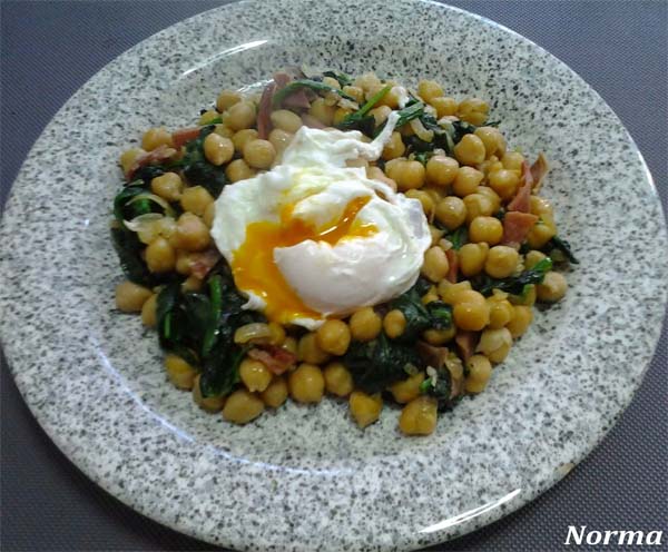 GARBANZOS CON ESPINACAS Y HUEVOS ESCALFADOS