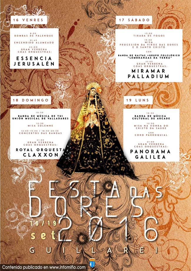 A parroquia tudense de Guillarei acolle do venres 16 ó domingo 18 de setembro as Festas na Virxe das Dores.