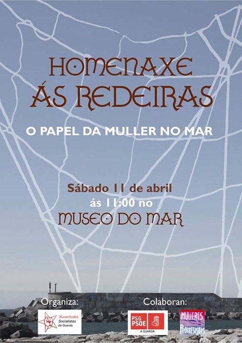 As Xuventudes Socialistas da Guarda, este vindeiro Sábado dia 11 as 11h da maña no Museo do Mar da Guarda (a antigua Atalaia), homexanearán a figura das redeiras da nosa vila, para ensalzar a figura da muller no ámbito mariñeiro, nun oficio ao que estiveron vinculadas moitas familias da nosa vila, con gran importancia por ser outra forma de ingresos en tempos moi duros, mentres os homes da familia saían o mar ou emigraban.