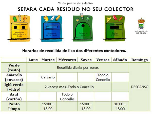 Horarios de recollida de lixo no Concello do Rosal