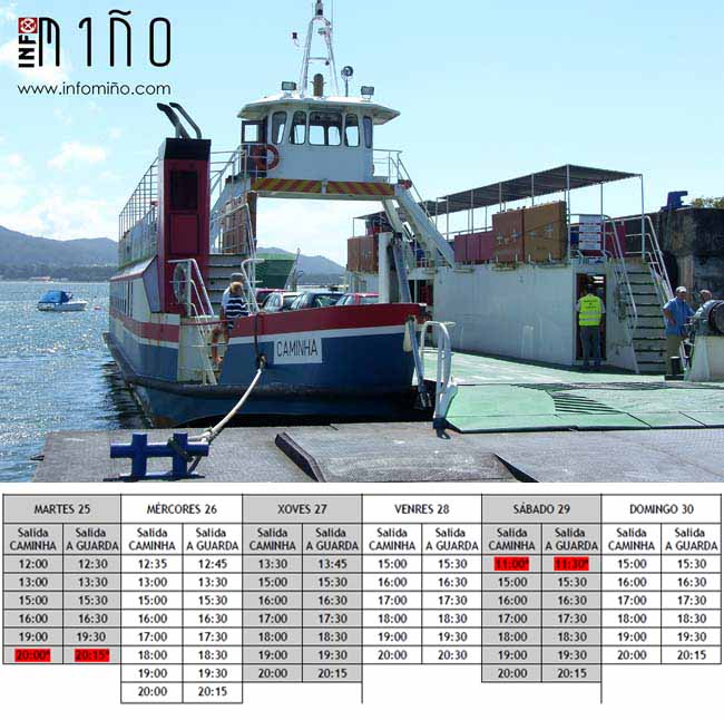 Horarios do ferry da Guarda e Caminha ata o domingo 30 de abril