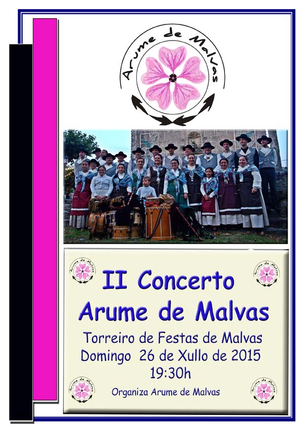 A banda de gaitas Arume de Malvas organiza o vindeiro domingo día 26 de Xullo de 2015 o II concerto da banda. Terá lugar a partires das 19.30h no Torreiro de Festas de Malvas.