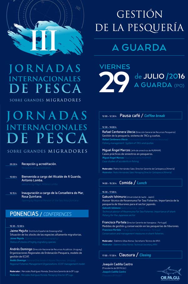 A Guarda coge este viernes día 29 de julio de 2016 las III Jornadas Internacionales de Pesca, un evento con relevancia internacional que atraerá a profesionales de todo el territorio nacional, así como de Japón y Uruguay.