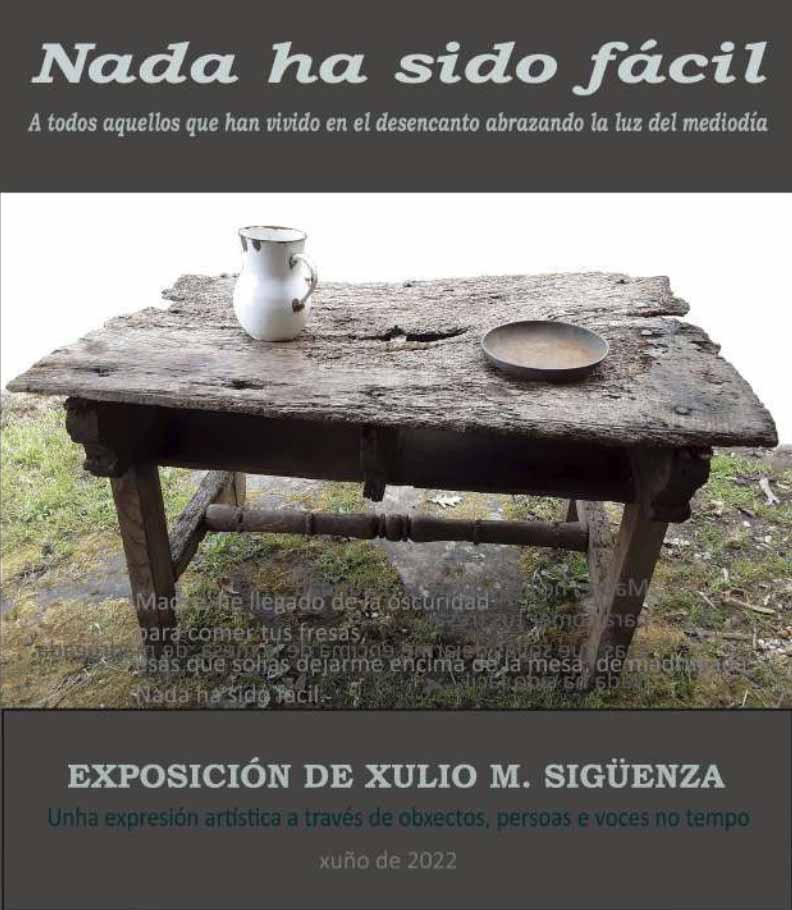 O vindeiro venres 10 de xuño ás 19:00h terá lugar a inaguración da exposición "Nada ha sido fácil" de Xullo M. Sigüenza. Esta exposición poderá verse na Sala de Exposicións do Edificio da Área Panorámica de Tui, ubicada na Rúa Colón, 2, que estará aberta de luns a venres de 08:30h a 13:30h e de 15:30h a 20:30h e os sábados de 09:00h a 13:00h.