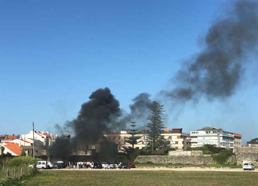 Un incendio ha calcinado esta tarde una construcción situada en el antiguo estadio del Tecla, en A Guarda. El fuego comenzó por razones aún desconocidas poco antes de las 18:00 horas, generando una gran columna de humo visible desde varios puntos de la localidad.
