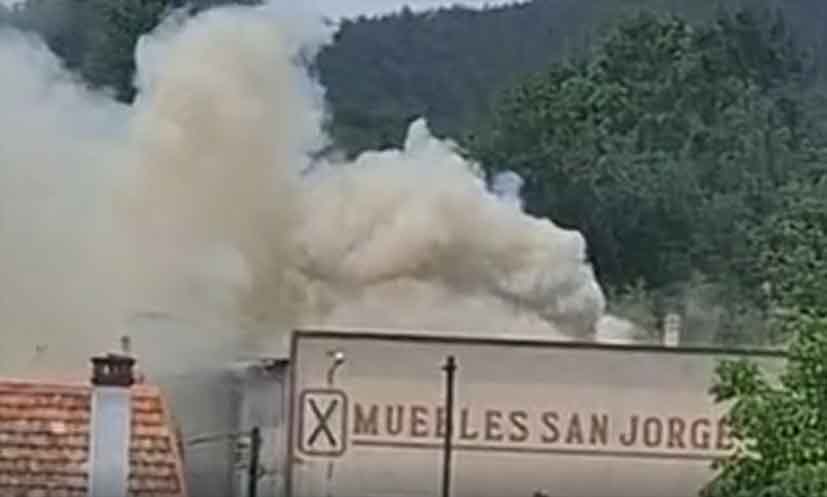 Un incendio declarado en la tarde de este jueves ha afectado a una nave industrial de la empresa Muebles San Jorge, dedicada a la carpintería de madera y la venta de muebles de todo tipo, ubicada en la calle Doctor Zunzunegui número 31, en el municipio pontevedrés de Salceda de Caselas.