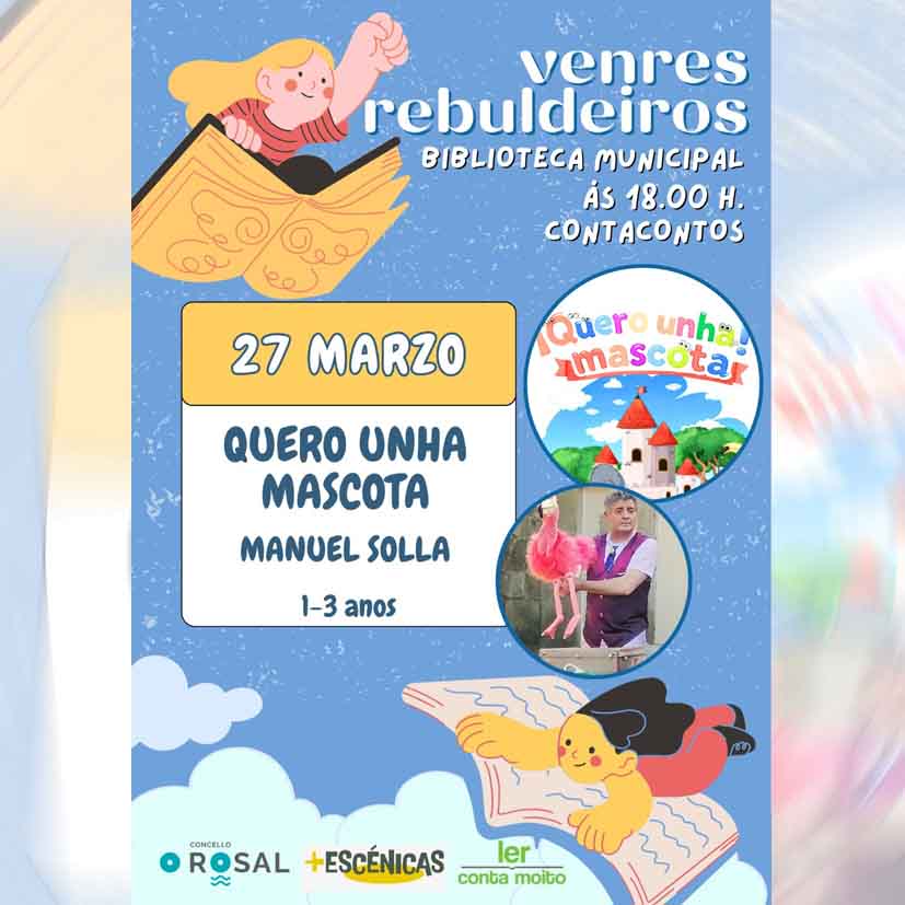 En esta ocasión, el ciclo trae el espectáculo “Quero unha mascota”, de Manuel Solla, una actividad diseñada para niños y niñas de entre 1 y 3 años en la que se combinan cuentos, animación y magia. La cita tendrá lugar el viernes 27 de marzo a las 18:00 horas y contará con entrada gratuita, facilitando el acceso a todas las familias del municipio.