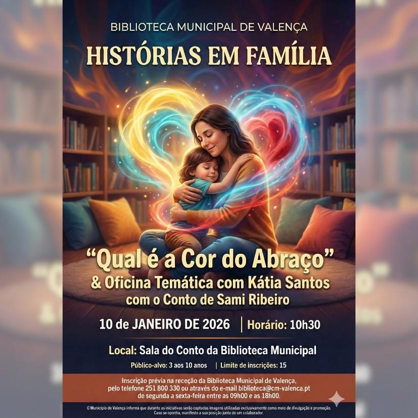La Biblioteca Municipal de Valença vuelve a abrir sus puertas a las familias este sábado, 10 de enero, con una nueva sesión del programa Histórias em Família, una iniciativa que busca fomentar la lectura y el vínculo familiar desde edades tempranas. La cita comenzará a las 10:30 horas y tendrá como protagonista el cuento infantil “Qual é a Cor do Abraço”.