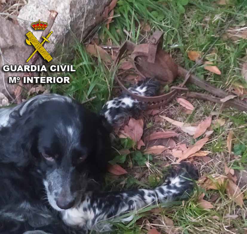 Cuando la patrulla del SEPRONA fue a inspeccionar la zona acompañado de un Agente Medio Ambiental del Servicio de Conservación de la Naturaleza de la Xunta de Galicia encontraron el cepo metálico que supuestamente había atrapado el perro y a escasos metros dos lazos situados en sitios estratégicos del cierre perimetral de una finca de maíz, que días antes había sido objeto, por parte del agente forestal, de un informe previo sobre valoración de daños ocasionados por el jabalí.