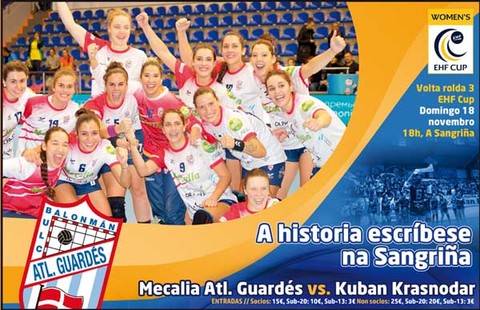 El MEcalia Atl. Guardés se enfrenta el Kuban en casa en la vuelta de la tercera ronda EHF