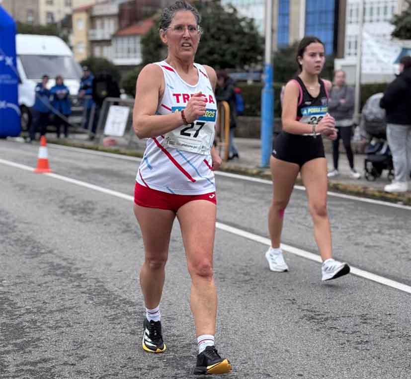 Loli Martínez sigue consolidándose como una de las marchadoras más destacadas de su categoría, logrando año tras año mejorar sus registros a pesar de compaginar su preparación deportiva con sus responsabilidades laborales y familiares. Su esfuerzo y dedicación la han llevado a convertirse en un referente dentro del atletismo máster en Galicia.