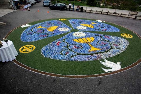 Las lluvias no impidieron la confección de las alfombras florales. Foto: Tomás Domínguez Fagúndez