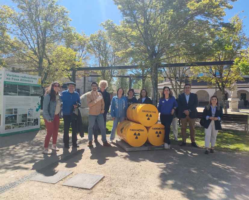 Uno de los elementos más simbólicos de la exposición son los bidones que recrean residuos radioactivos, en referencia a la histórica movilización contra los vertidos nucleares en la Fosa Atlántica, uno de los episodios más representativos del ecologismo gallego.