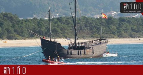La replica de la carabela La Pinta surca de nuevo las aguas del Río Miño