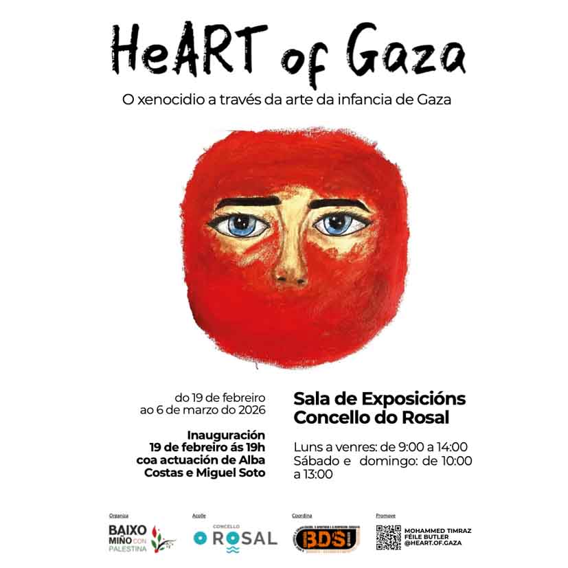 La Sala de Exposiciones del Concello do Rosal acoge desde este jueves 19 de febrero la muestra internacional heART of Gaza, una exposición que reúne cerca de cincuenta dibujos realizados por niñas y niños de entre 3 y 17 años que viven en la Franja de Gaza. La iniciativa permanecerá abierta al público hasta el próximo 6 de marzo.