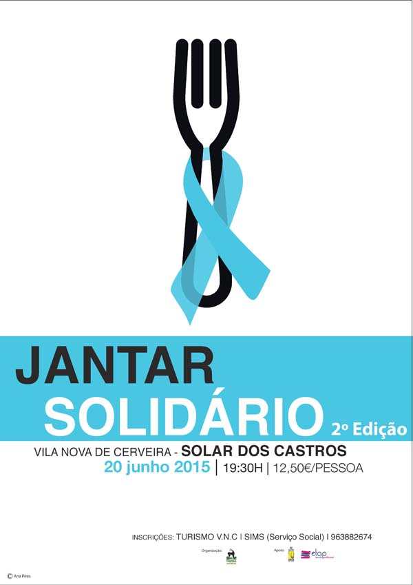 Á semelhança do ano anterior, a segunda edição do Jantar Solidário em Vila Nova de Cerveira decorre no Jardim da Biblioteca Municipal (Solar dos Castros), e conta com a colaboração de vários comerciantes da Vila e também muitos anónimos que se juntaram a esta causa doando ingredientes para a confeção da refeição. O valor angariado com esta iniciativa reverte na totalidade a favor da Liga Portuguesa Contra o Cancro.