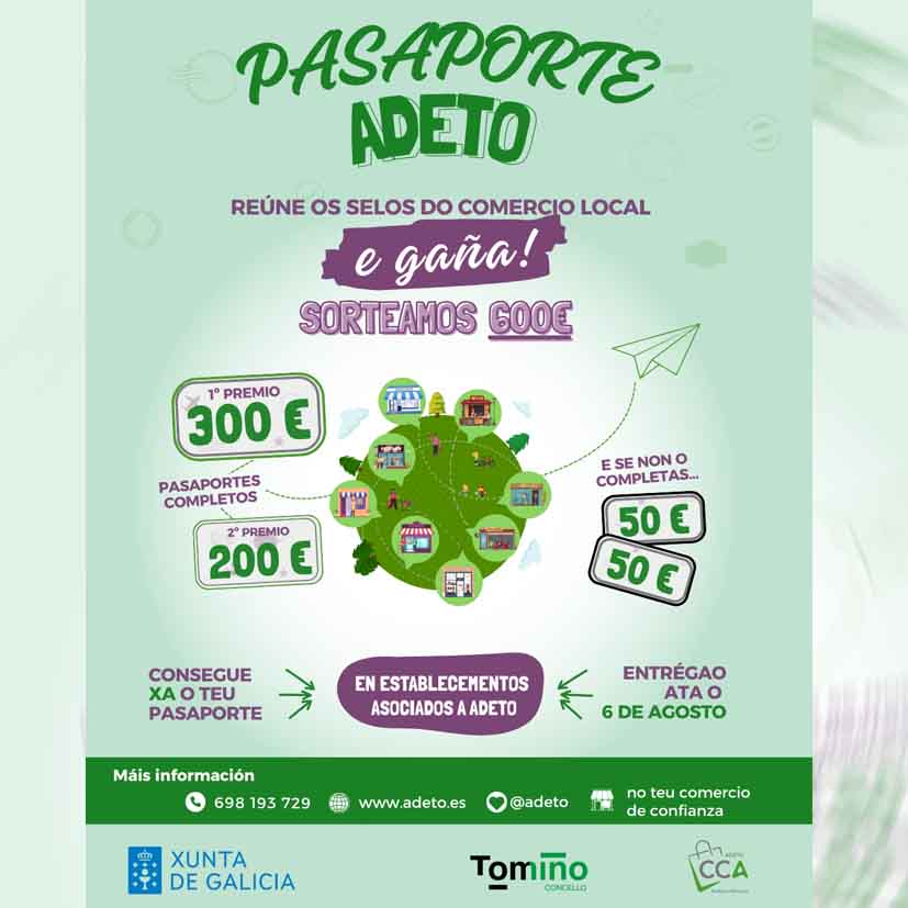 El Pasaporte ADETO cuenta con la cofinanciación de la Xunta de Galicia, el apoyo del Concello de Tomiño y el patrocinio de varios comercios locales como Manel Riveiro Peluqueros, Orientalia, Chévere, J. Carrera Decoración, Óptica Central, La Dulcekatta y Librería Ideas.