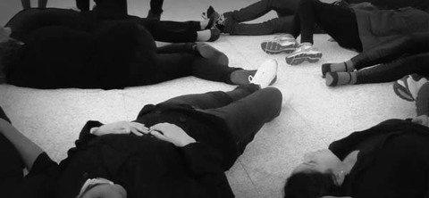 Un grupo de mujeres, vestidas de negro, se reuniron y se tendieron en el suelo simulando estar muertas, asesinadas como las que pueblan los titulares de prensa cada día, cada semana, incesantemente, año tras año