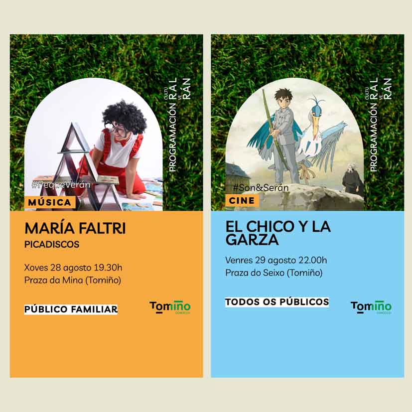 El Concello de Tomiño despide el mes de agosto con dos propuestas culturales dirigidas a todos los públicos, enmarcadas en los ciclos #Pequeverán y #Son&Serán, que consolidan la apuesta municipal por una programación diversa, gratuita y accesible.