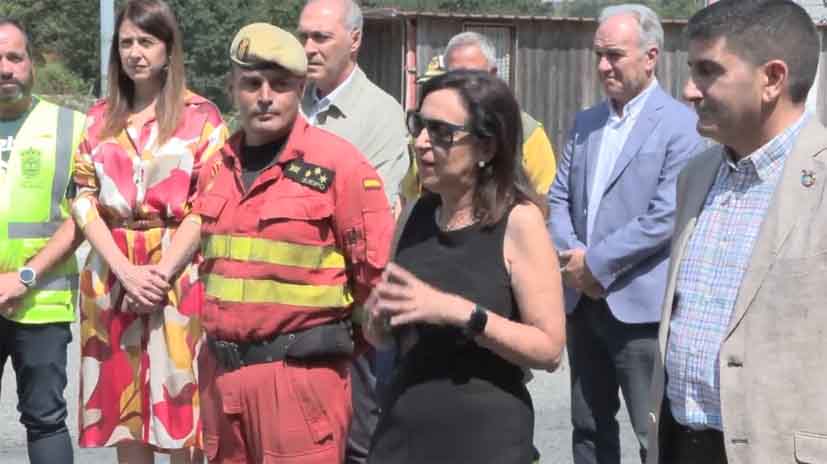 Robles también visitó en Vilaboa a los miembros de la UME desplegados en la zona dentro de la llamada Operación Cortafuegos, que refuerza el apoyo logístico y operativo a los equipos de extinción. Según explicó, este operativo supone un esfuerzo significativo para los militares, que llevan trabajando sin descanso desde el pasado 2 de agosto.