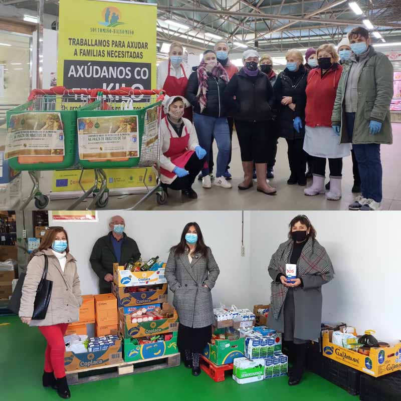 Media tonelada de alimentos foron os  recollidos na Campaña solidaria de Nadal desenvolvida na praza de Abastos de Tui a favor de SOS Tomiño-Baixo Miño.  Hai uns días tiña lugar a entrega destes alimentos á asociación asistencial que os distribuirá entre as familias ás que presta axuda.