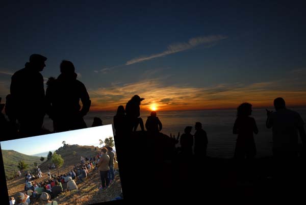 Seguiu a música ata o solpor. A partir das oito da tarde os asistentes dispuxéronse na croa do castro para contemplar como o sol se mergullaba no mar, entre unha explosión de cores alaranxados e vermellos e coa música de A Fiada de Viladeuso como acompañamento idóneo.