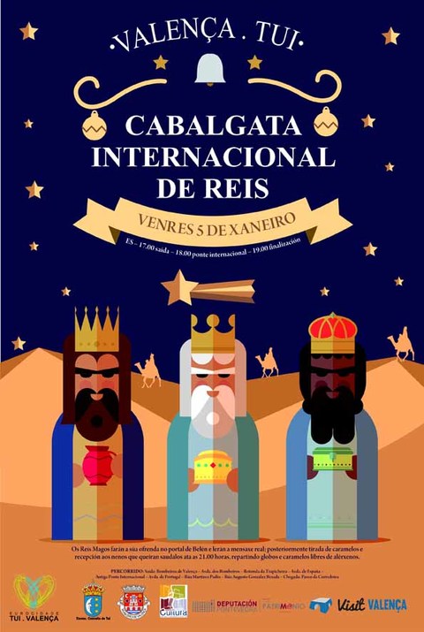 A Cabalgata Internacional de Reis está organizada pola Concellería de Cultura, Patrimonio e Medio Ambiente do Concello de Tui conxuntamente coa Cámara Municipal de Valença, dentro das actividades da Eurocidades Valença-Tui. Colaboran a Radio Municipal de Tui, o Grupo Scout Alhoia, a Policía Local e as Asociacións Culturais "Arume" de Malvas, "Lembranzas da terra" de Guillarei, "Aloia" de Pazos de Reis e "Xuntanza" de Randufe por parte tudense, e a GNR e Bombeiros Voluntarios de Valença, e protección civil de Valença.